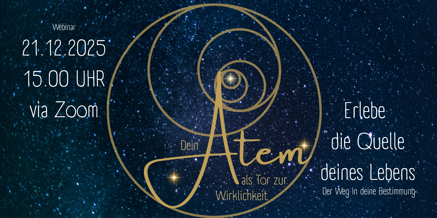 Tauche in deine Tiefe und lerne den Atem als die Kraft zu erkennen, die dich mit der Ewigkeit verbindet. Dein Atem ist das Tor zu deiner Wirklichkeit bedeutet, dass er den Raum der Unendlichkeit in dir eröffnet, du in ihn eintauchen kannst und dich in tiefer Verbundenheit zu allem, was ist, erleben kannst.